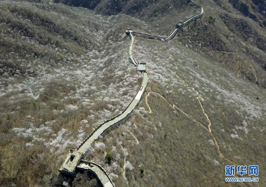 近日,隨著氣溫逐步回升,北京慕田峪長城山花爛漫,春意漸濃。