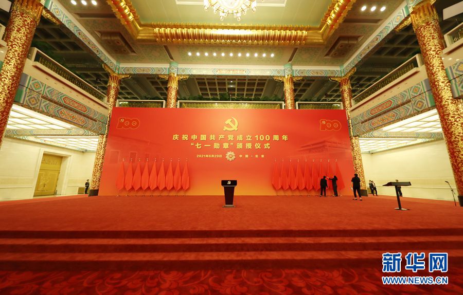 6月29日上午10時,“七一勛章”頒授儀式將在人民大會堂隆重舉行。新華網 陳杰 攝