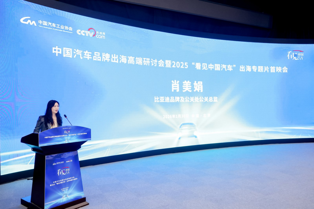 1月30日下午,中国汽车品牌出海高端研讨会暨“看见中国汽车”出海专题片首映会在北京举行。专题片紧扣中国汽车“扬帆出海”的主旋律,通过长安、奇瑞、比亚迪、北汽福田、一汽红旗五家具有代表性的品牌的出海故事,呈现出中国汽车走向世界的实践历程。