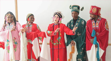 2月21日,四川眉山市东坡区心连心艺术团演员在崇礼镇复盛社区表演川剧绝活“变脸”,并与现场观众互动。