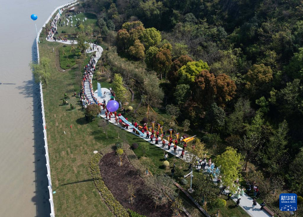 4月2日拍摄的蚕花节民俗巡游活动(无人机照片)。