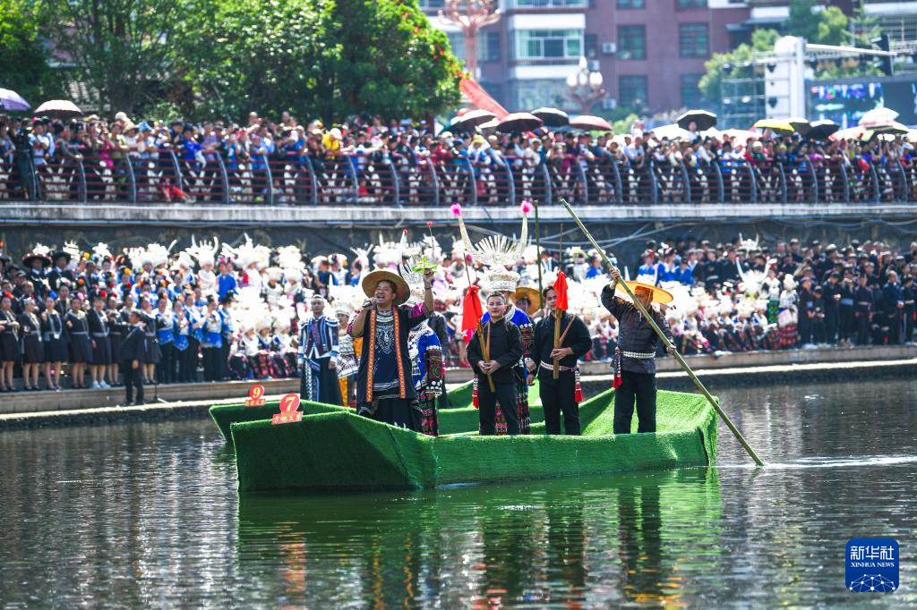 5月2日,人们在贵州省台江县参加苗族姊妹节盛装巡游。