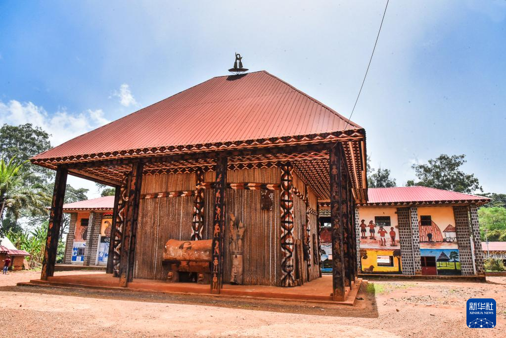 这是4月13日在喀麦隆西部大区拍摄的巴图方酋邦宫殿内的议事堂。