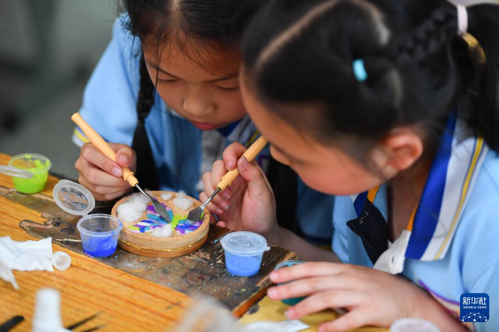 近年来,湖南省长沙市天心区红卫小学积极落实“双减”政策,联合专业机构设计了丰富的课后服务内容,包含剪纸艺术、手工风筝、传统服饰设计、趣味脸谱、景泰蓝掐丝珐琅画、拓印、皮影戏等,让学生零距离感受非遗,激发学生对传统文化的兴趣,推动非遗的传承,助力“双减”。