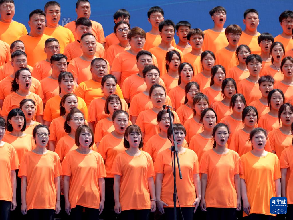 当日,中流砥柱·三门峡黄河大合唱艺术节在河南省三门峡市举行。活动上,参演人员齐聚黄河岸边合唱,抒发对母亲河的深深爱恋。