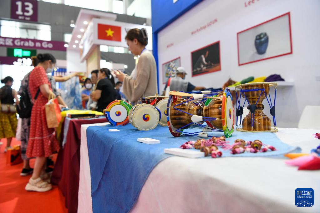6月9日,在文博会“文旅消费馆·一带一路国际馆”韩国展台,观众在选购特色商品。