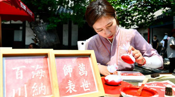 6月27日,与会嘉宾在第十四届夏季达沃斯论坛文化之夜现场了解天津非遗项目。