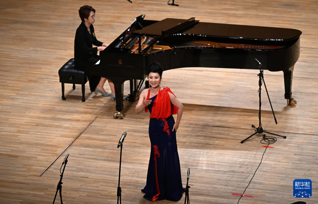 7月1日,天津歌舞剧院演员陈姝在演唱选自歌剧《玉鸟兵站》的曲目《我心永爱》。