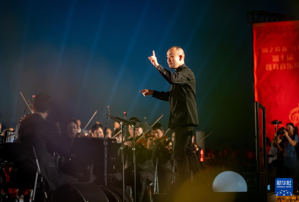 伴着晚霞,第七届聂耳音乐周昆明分会场开幕式在滇池畔举行(7月17日摄)。