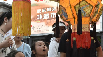 7月18日,参观者在观看艺术作品《幸福的全家福》。