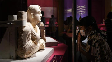 7月23日,小朋友在贵州剑河仰阿莎文化节上参加苗族水鼓舞活动。