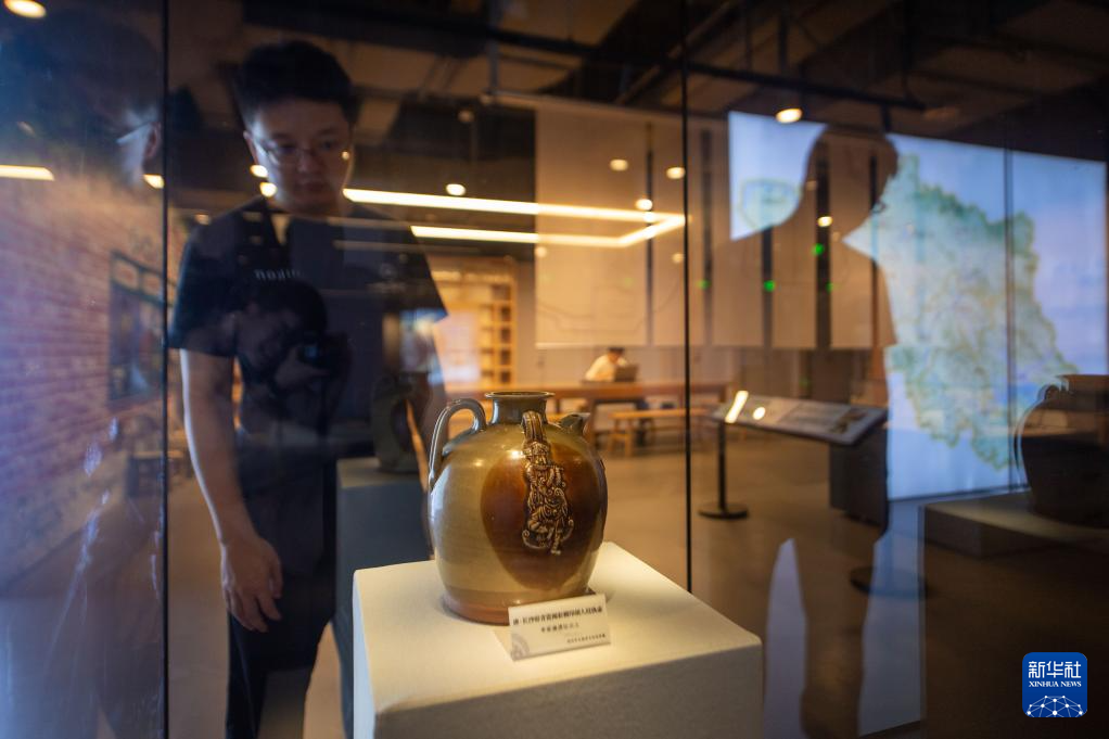 这是8月9日在杭州西站拍摄的“西站两千年——李家塘遗址文物展”展区。