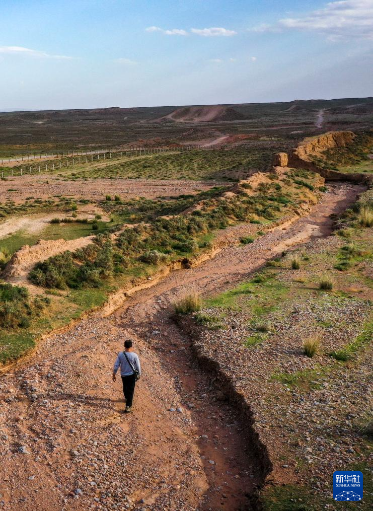 8月20日,董海宁徒步巡查贺兰山沿线的明长城永宁段(无人机照片)。