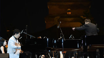 新疆艺术剧院民族乐团在晚会现场表演器乐与二重唱《吐鲁番的姑娘》(9月12日摄)。