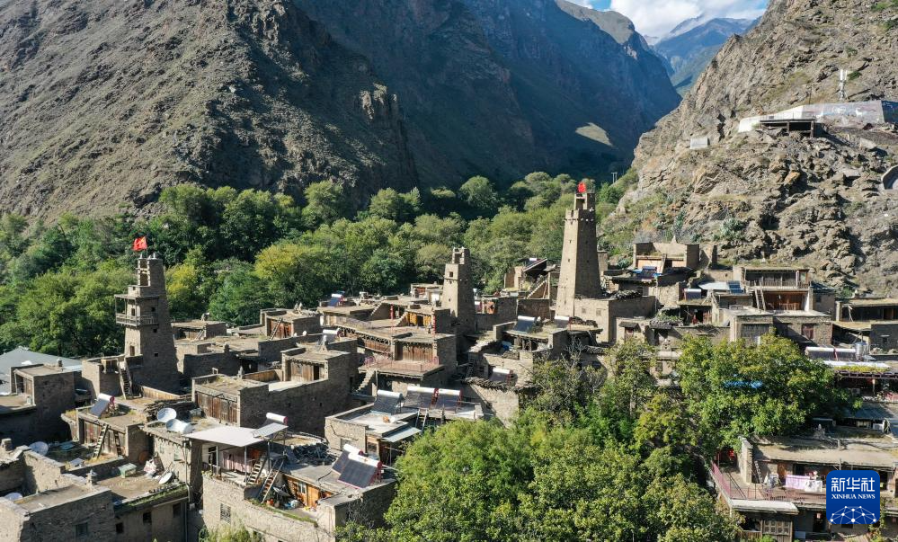 9月13日拍摄的桃坪羌寨新寨(无人机照片)。
