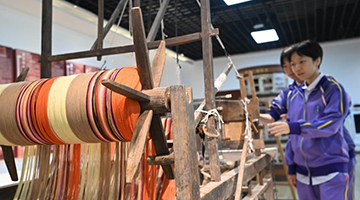 在西藏墨脱县背崩乡巴登村,一名村民将藤竹条切削成适合的宽度(10月11日摄)。