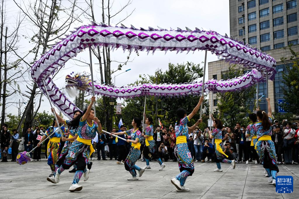 10月27日,在广西桂林市山水公园,演员们在进行舞龙表演。