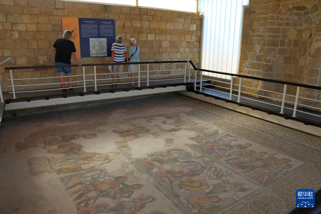 这是11月8日在塞浦路斯帕福斯考古公园内拍摄的马赛克地板。