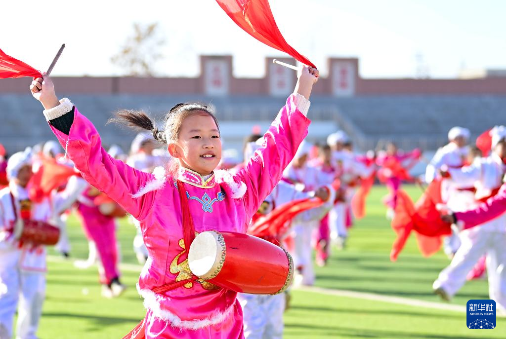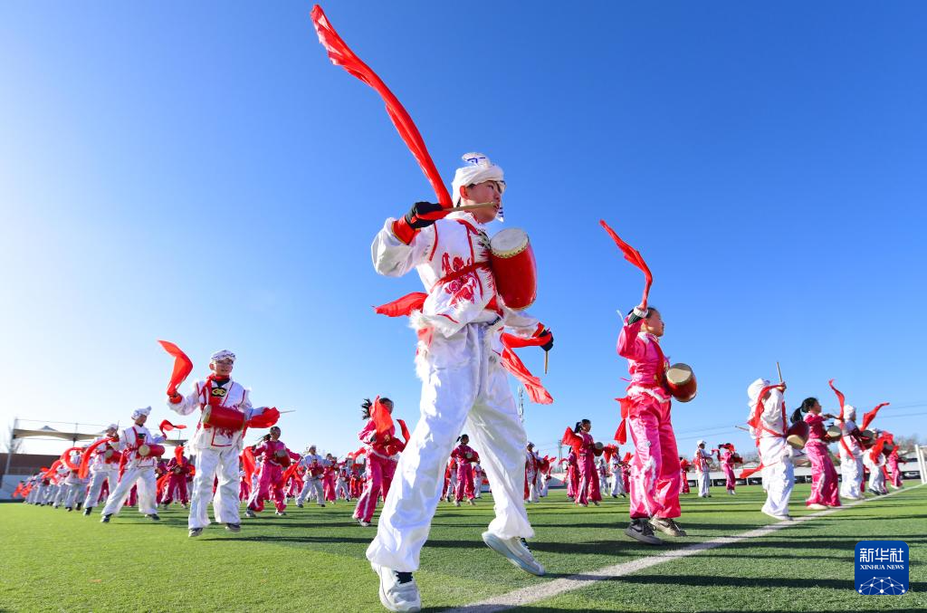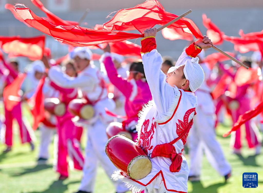 安塞腰鼓跃动大课间-新华网