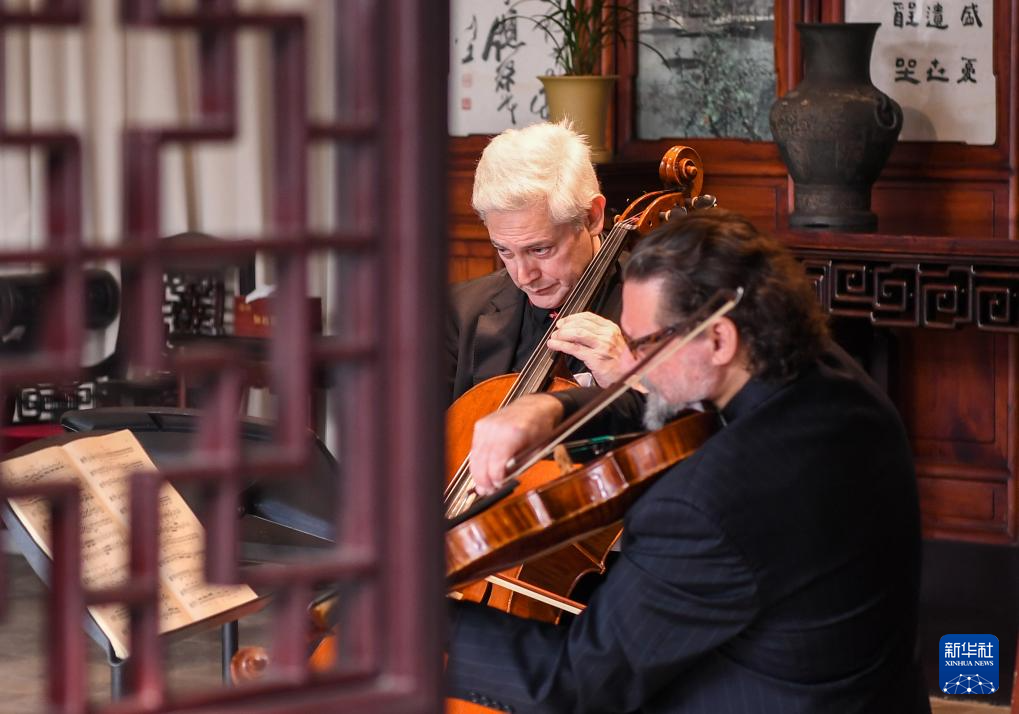11月16日,来自费城交响乐团的演奏家们在苏州拙政园玉兰堂演奏。