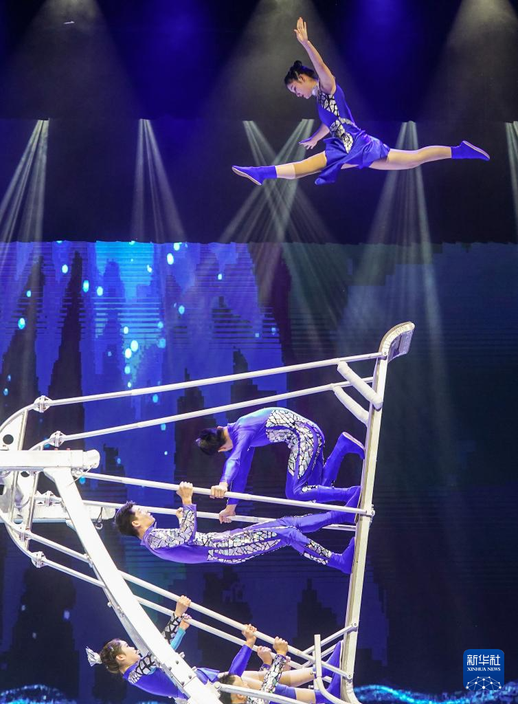这是武汉杂技艺术有限责任公司带来的杂技《扬帆追梦·浪船》(11月17日摄)。