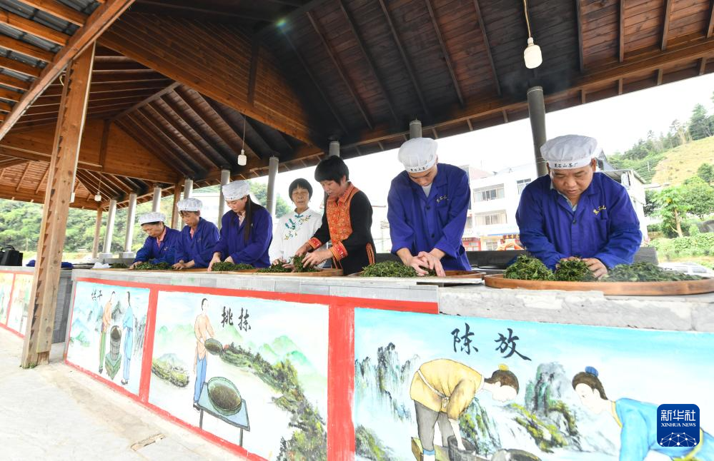在梧州市苍梧县六堡镇黑石山茶厂,工人在加工茶叶(9月6日摄)。