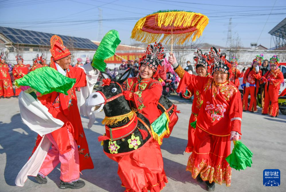随着新年临近,河北省遵化市的民间艺人忙碌起来,他们加紧排练赶驴、旱船、花轿等传统民俗节目,为迎接新年演出做好准备。
