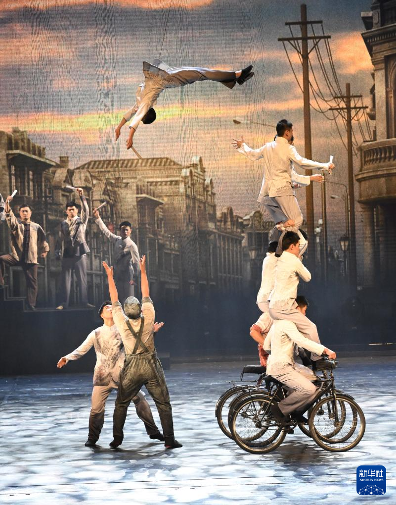 1月6日,演员在杂技剧《先声》中表演。