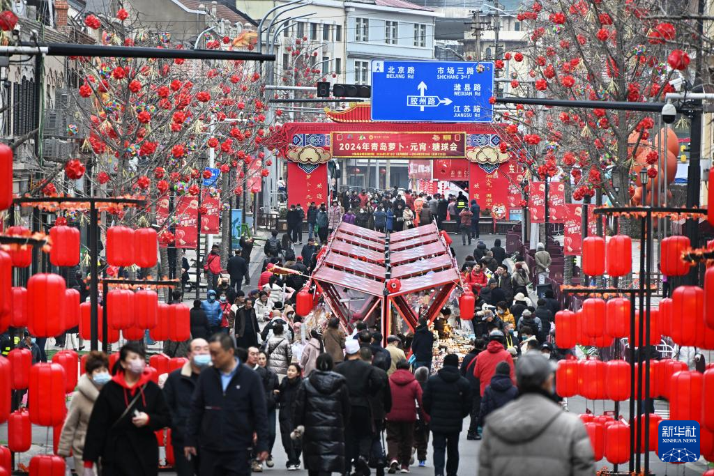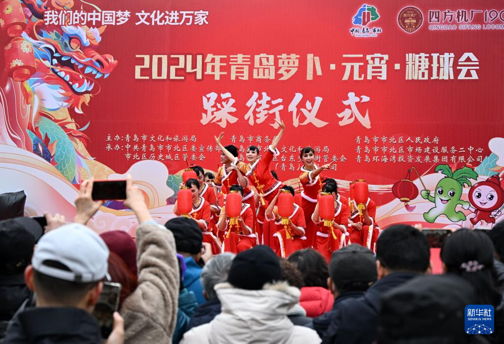当日,2024年青岛萝卜·元宵·糖球会正式开幕,活动包含赏花灯、观舞龙、赶大集、游园会等特色民俗活动,吸引不少市民、游客前来参观。