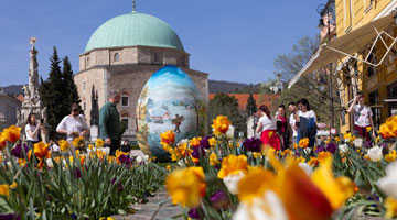 3月31日,在天津棉3创意街区,市民在海河旧书市集活动上参观展览。