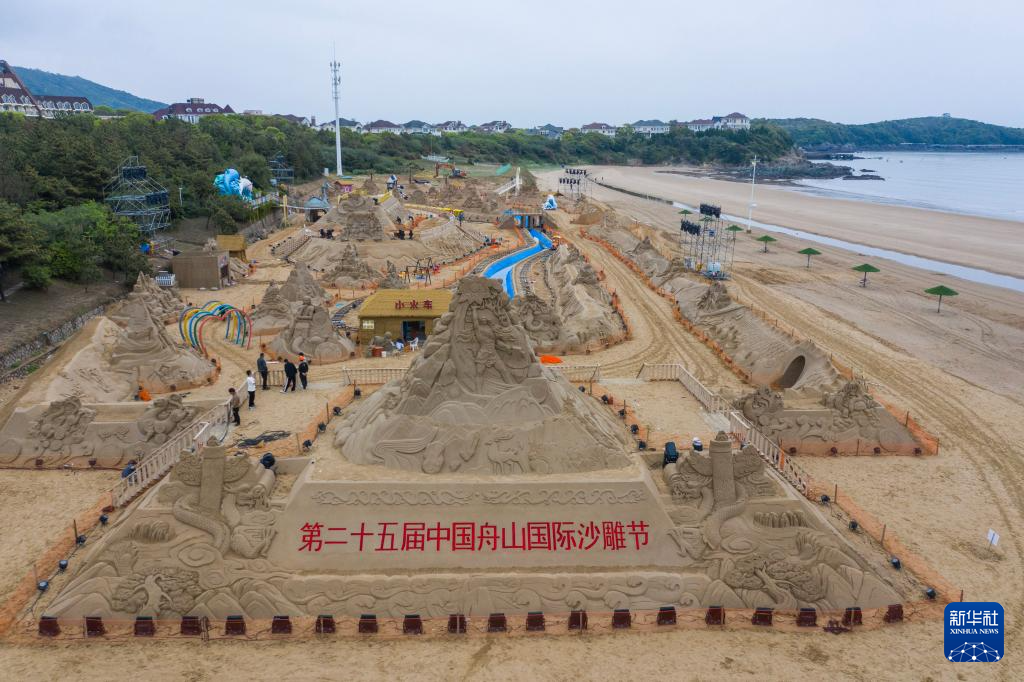 4月下旬,第二十五届中国舟山国际沙雕节作品在浙江省舟山市朱家尖南沙景区内创作完成。这是浙江舟山为了迎接即将到来的“五一”假期而呈现给游客们的特色旅游展示项目之一。
