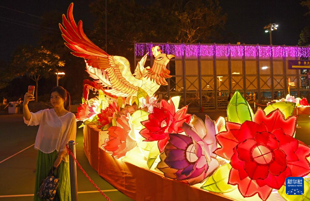 当日,以“国风·港味”为主题的中秋彩灯会在香港维多利亚公园亮灯,迎接中秋节和国庆节。