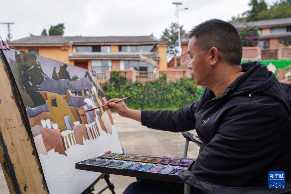 10月30日,一名绘画爱好者在土瓜冲村写生。