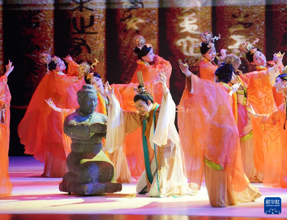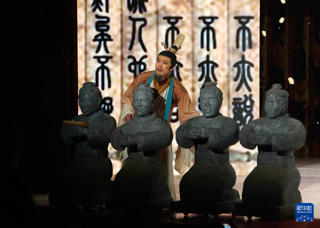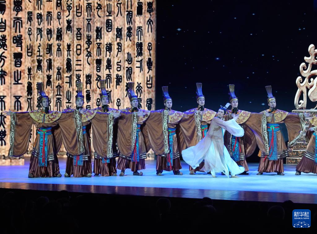 11月6日,演职人员在表演民族舞剧《孔子》片段。