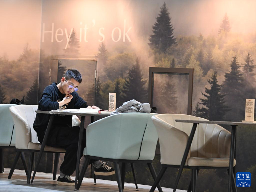 12月16日,读者在青海省西宁市城西区几何书店阅读。