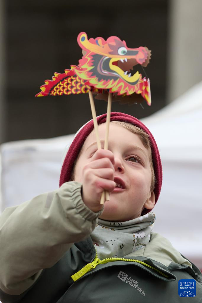 1月25日,一名儿童参加在比利时首都布鲁塞尔举行的“中国春节游园庙会”活动。