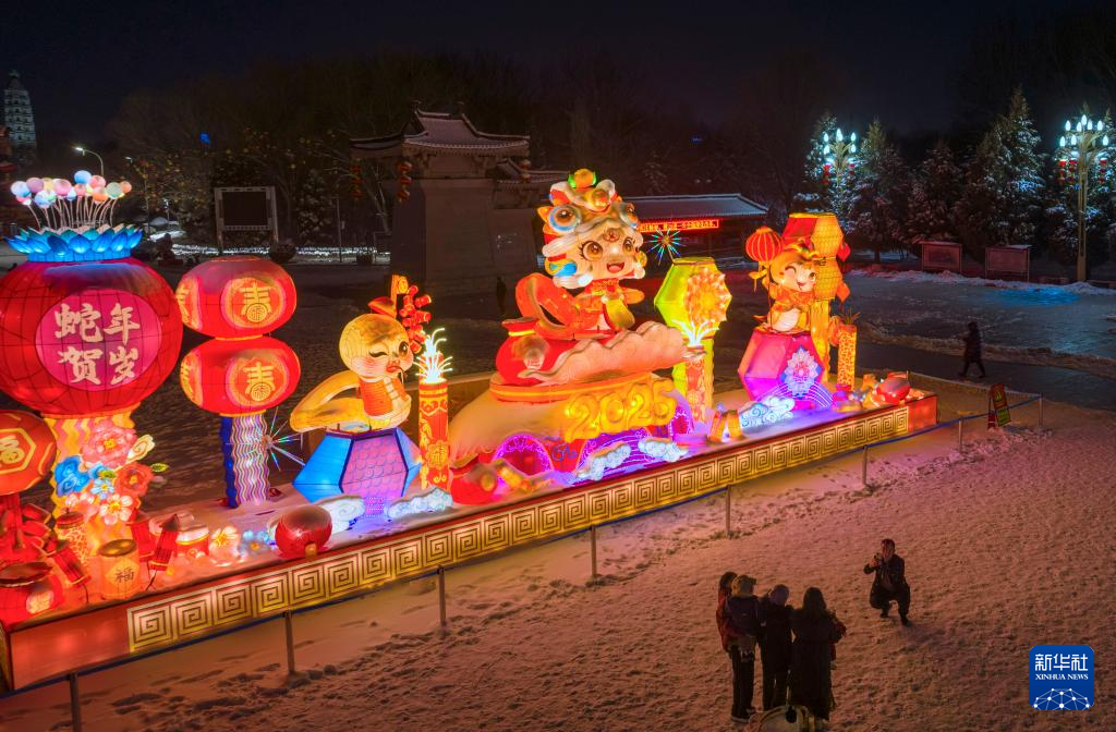 1月25日,市民在宁夏银川海宝公园游玩(无人机照片)。