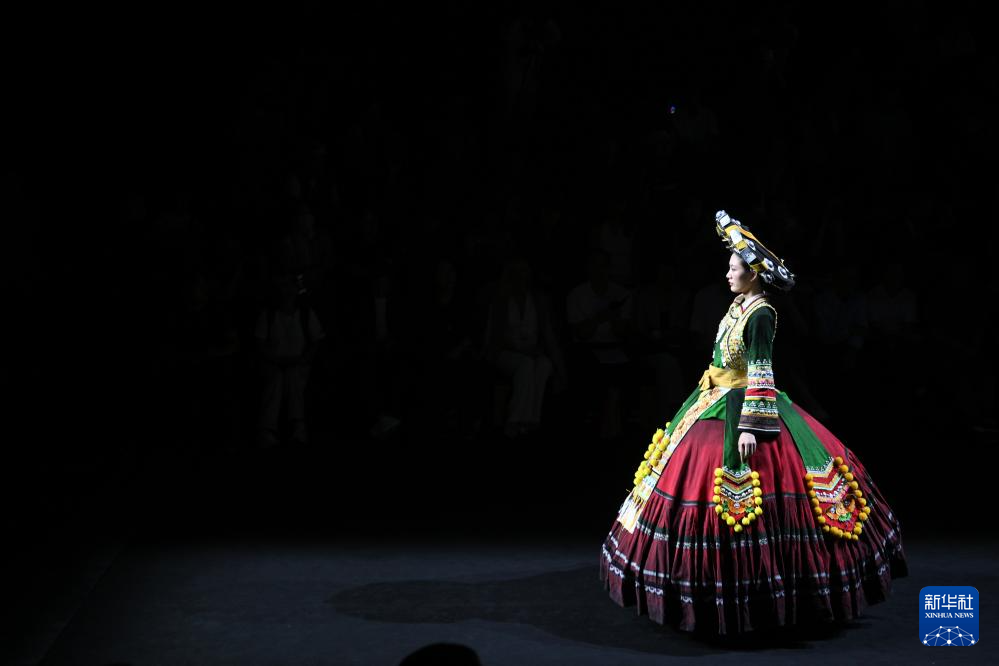 9月8日,模特在中国国际时装周·楚雄时装周彝绣非遗创新专场上展示时装。