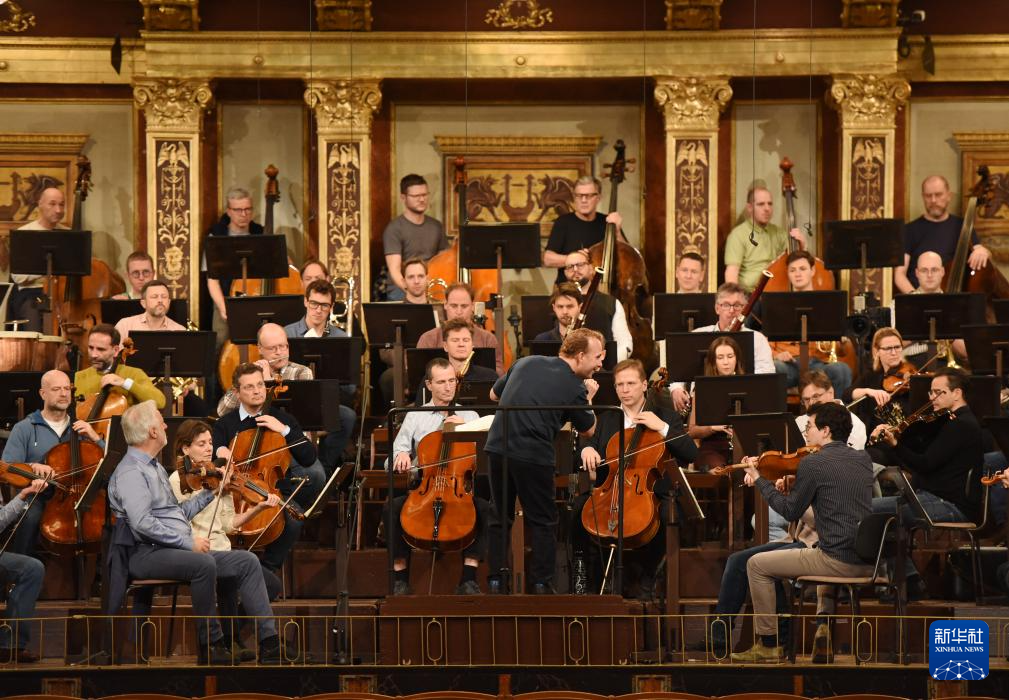 当日,2026年维也纳新年音乐会新闻发布会在奥地利首都维也纳举行。发布会后,指挥家雅尼克·涅杰-瑟贡和维也纳爱乐乐团在金色大厅为2026年维也纳新年音乐会进行彩排。