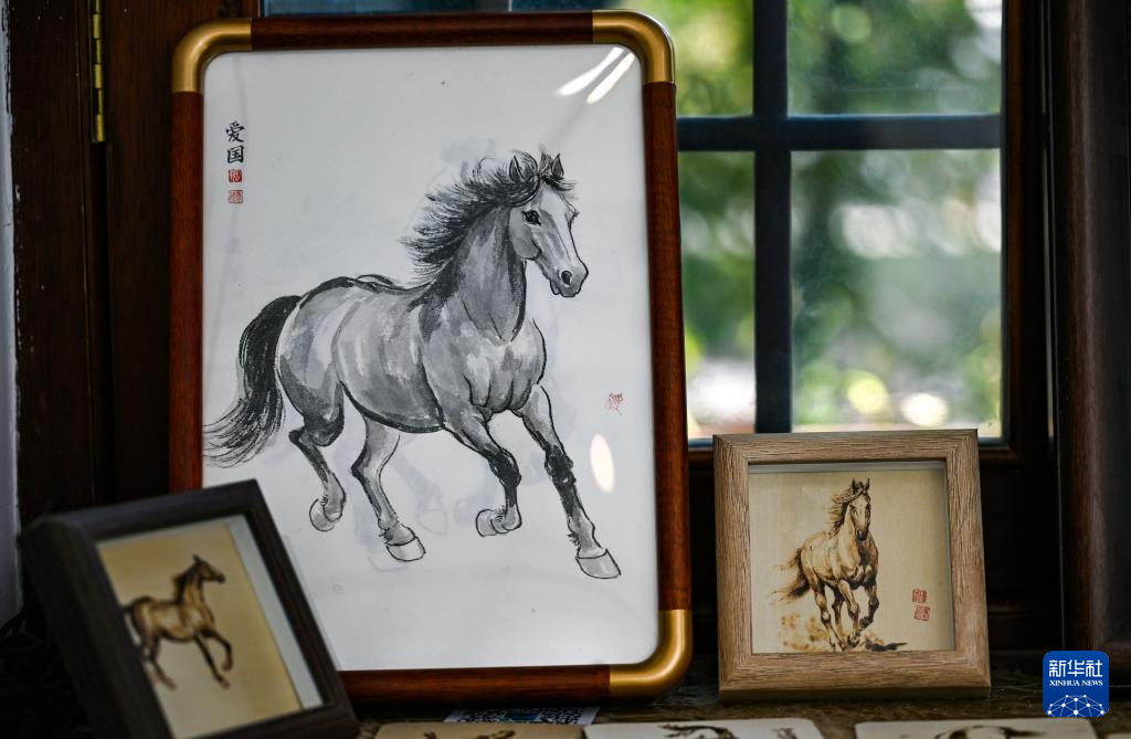 12月29日,参观者在天津古文化街参观“喜迎马年,五代画马人马画艺术展”。