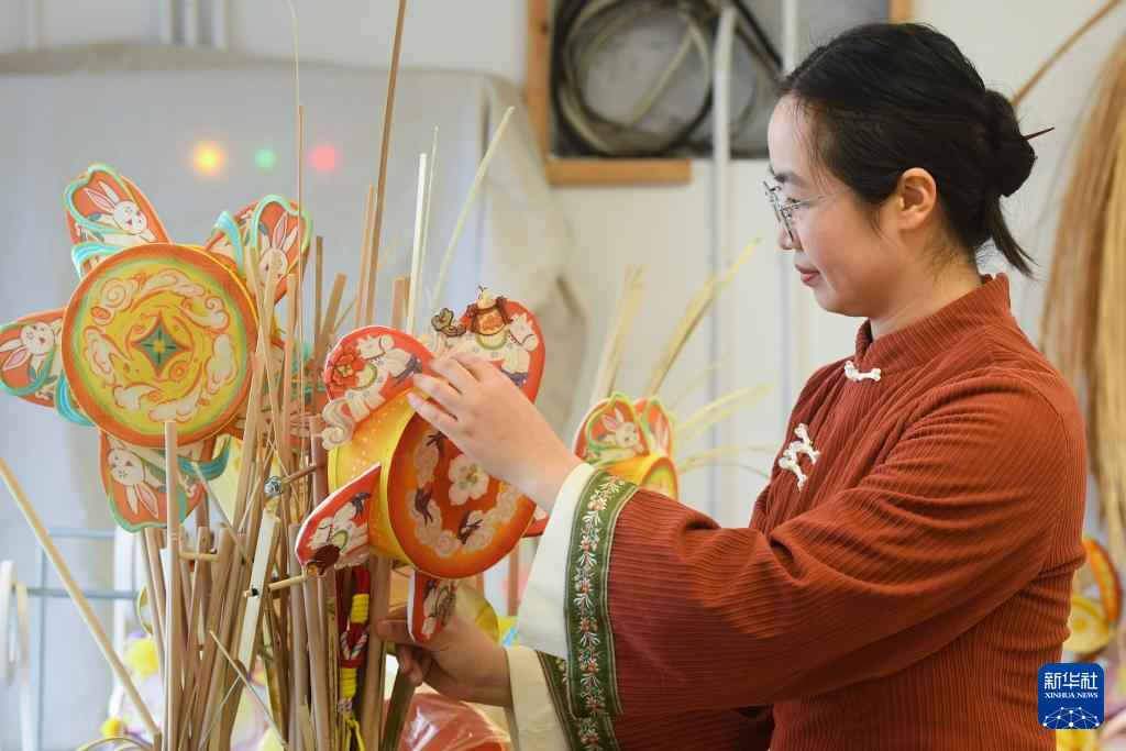 12月30日,徐无瑕在工作室制作小马灯。