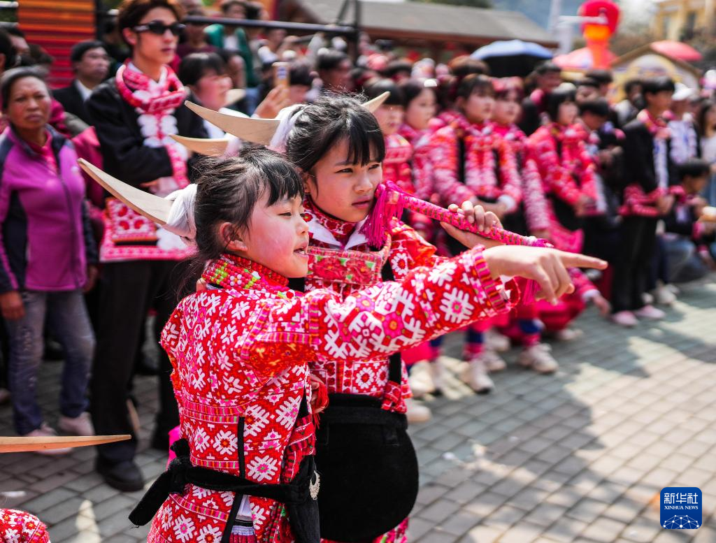 2月26日,在贵州省六盘水市六枝特区梭戛苗族彝族回族乡高兴村跳花场,苗族群众在表演舞蹈。
