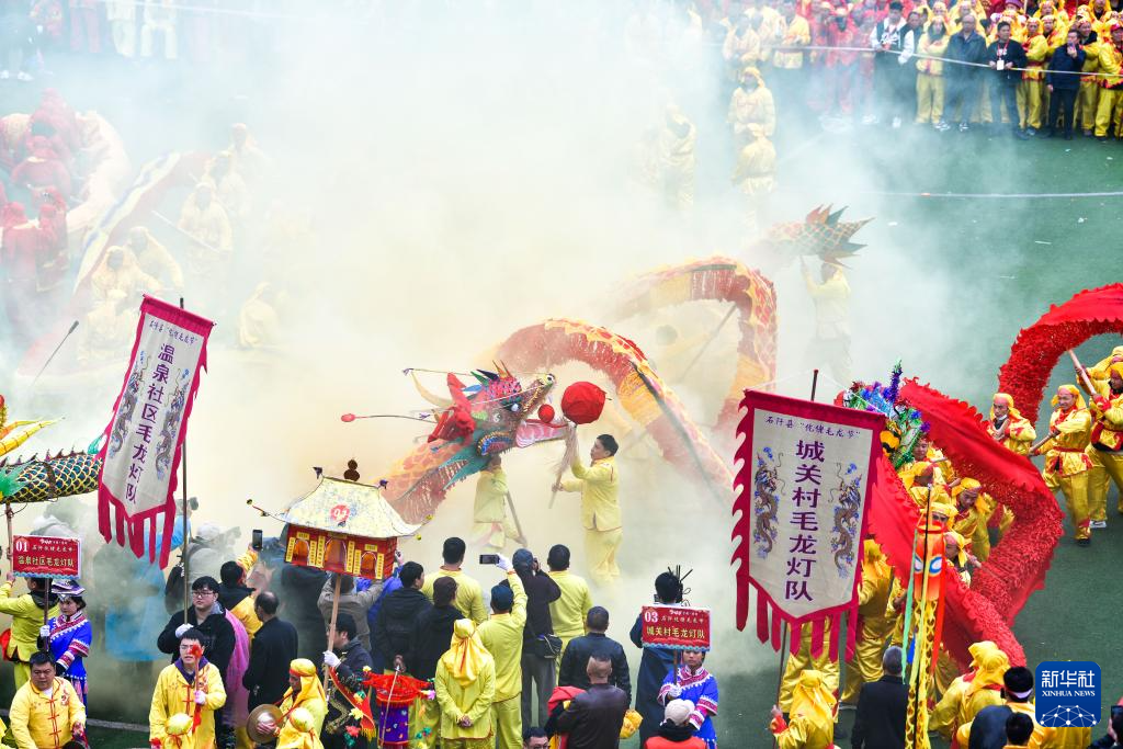 2月27日,人们在贵州省石阡县参加仡佬毛龙节舞龙大赛。
