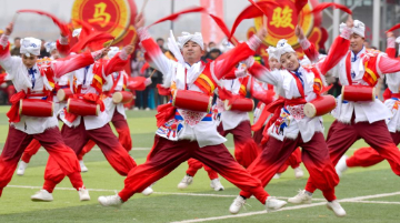 3月2日,人们在江苏省连云港市连云区表演民俗节目。
