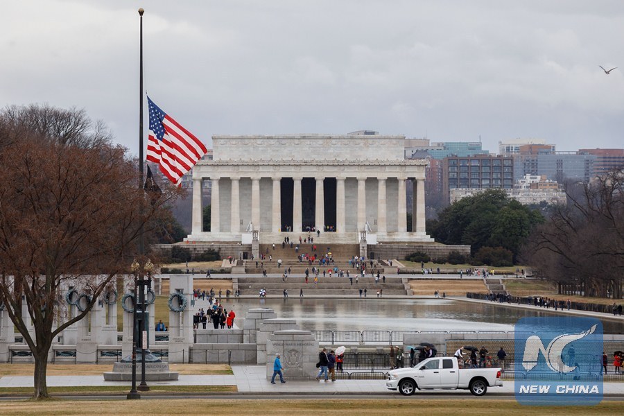 The flag above the White House is lowered to half-staff for the shooting victims of a mass shooting in a South Florida High School, in Washington D.C., United States on Feb 16, 2018. (Xinhua/Ting Shen)