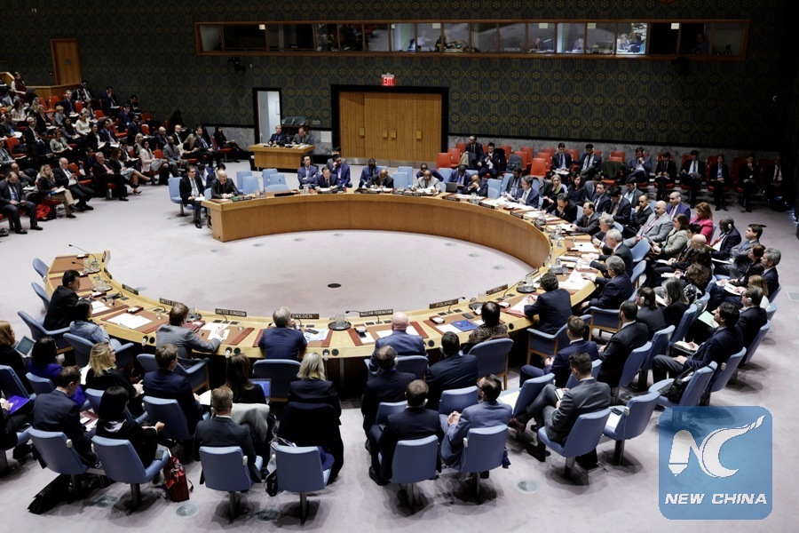 United Nations Security Council holds a meeting on the situation in Syria, at the UN headquarters in New York, March 12, 2018. (Xinhua/Li Muzi)