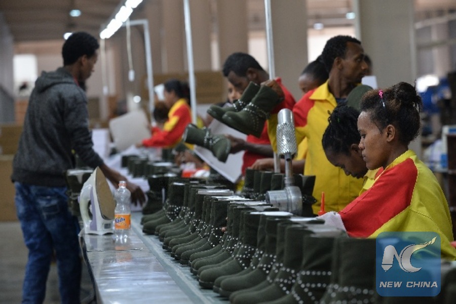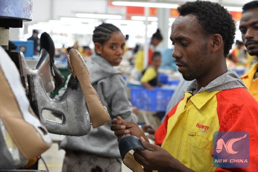 Laborers work at Huajian factory, south of Addis Ababa, capital of Ethiopia, July 19, 2017. (Xinhua/Michael Tewelde)