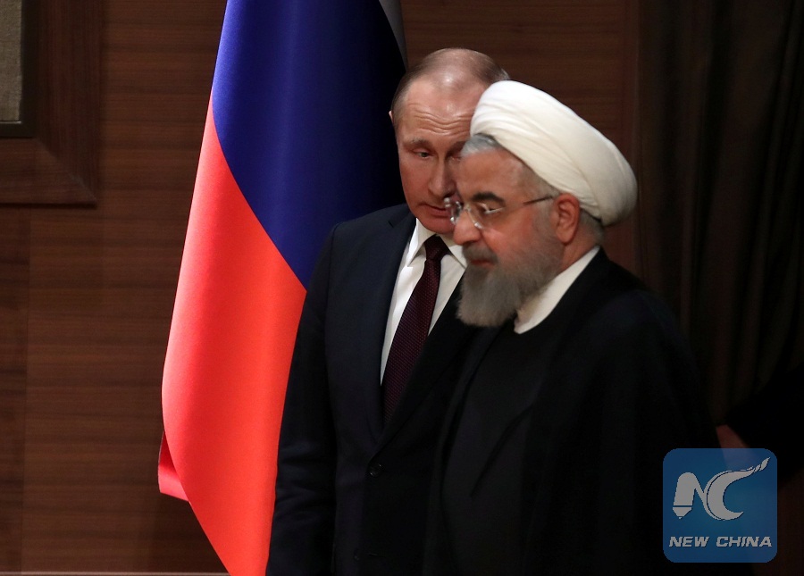 Russian President Vladimir Putin and his Iranian counterpart Hassan Rouhani arrive for a joint news conference after their meeting in Ankara, Turkey April 4, 2018. (Reuters Photo)