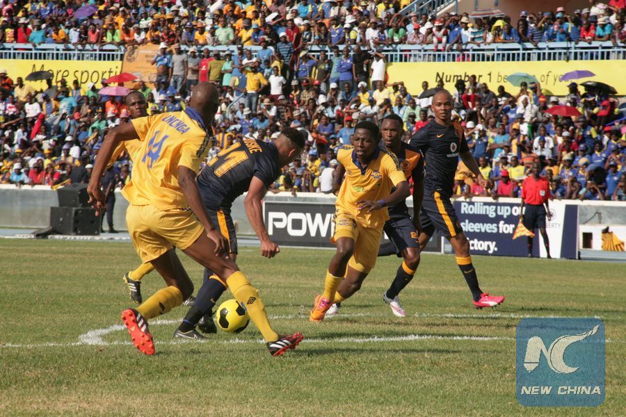 File photo shows South Africa's Kaizer Chiefs competes with Botswana's Township Rollers during the second leg match of Orange Confederation of African Football (CAF) club championships in Gaborone, capital of Botswana, Feb. 28, 2015. (Xinhua/Koone Boikaego)