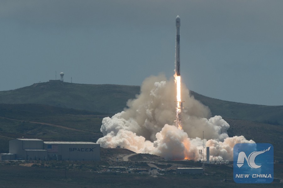 LOS ANGELES, May 22 (Xinhua) -- U.S. private space firm SpaceX launched two new Earth-observing satellites for NASA and five commercial communications satellites for Iridium on a used Falcon 9 rocket in a ride-share mission on Tuesday.